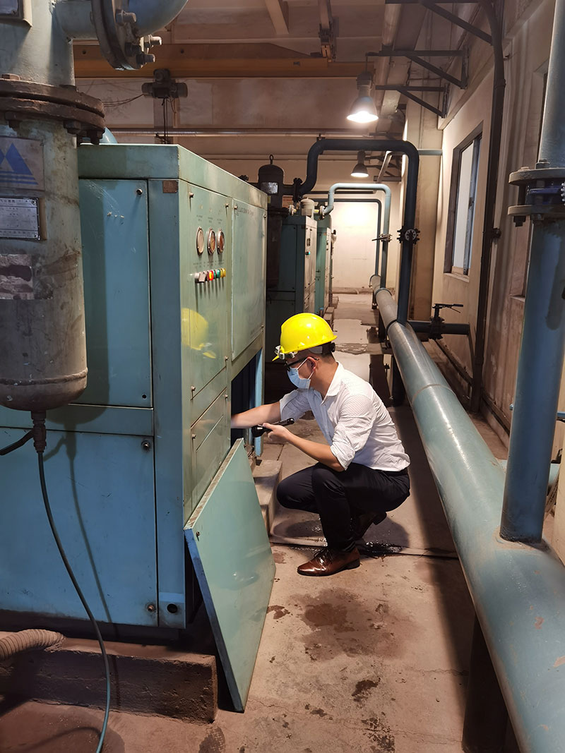 從河內(nèi)到胡志明市,再從胡志明經(jīng)10幾個小時的周轉(zhuǎn)到達(dá)熱電廠項(xiàng)目地,現(xiàn)場20多臺我司設(shè)備,有的已長達(dá)10年機(jī)齡,轟隆隆的在悶熱陳舊的機(jī)房里運(yùn)轉(zhuǎn),我們的服務(wù)工程師從顯示屏露點(diǎn)、溫度等數(shù)據(jù)再到閥門、壓縮機(jī)、末端含水量、電排等一一進(jìn)行檢修,確保電廠能夠穩(wěn)定和高品質(zhì)地用氣。等所有設(shè)備檢修完畢,服務(wù)工程師早已汗流浹背。