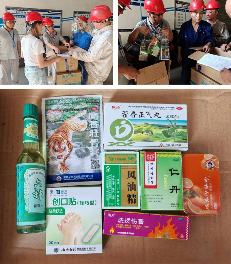 公司工會主席劉總為車間員工發(fā)放了藿香正氣丸、風(fēng)油精、燙傷膏等慰問禮盒,并叮囑大家做好高溫作業(yè)個人防護(hù)工作,關(guān)注自身健康、確保自身安全。