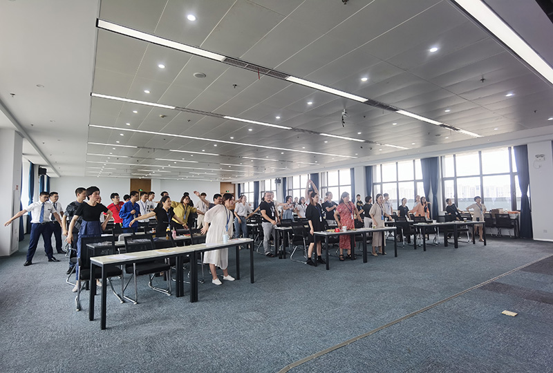 郭老師以學(xué)員為中心,通過講授、案例分析、情景模擬、游戲互動等方式從“內(nèi)卷時代的我們何去何從”做為開篇,再從“情緒管理篇”、“壓力轉(zhuǎn)換篇”到最后的“總結(jié)分享”,為大家?guī)砩鷦有蜗蟮恼n程。