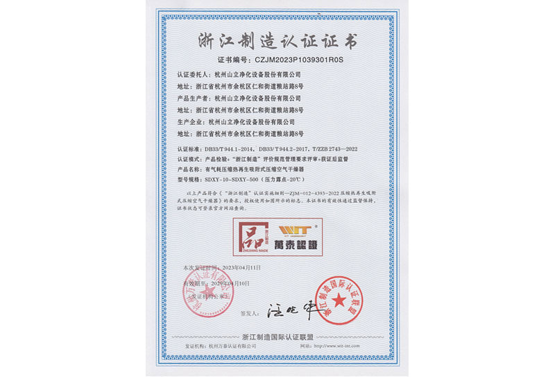 2023年4月,杭州山立成功獲得浙江制造認證證書,此次認證通過,是對杭州山立產(chǎn)品質(zhì)量的肯定。